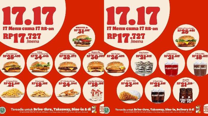 Burger King menawarkan 17 menu pilihan cuma Rp 17 ribu.