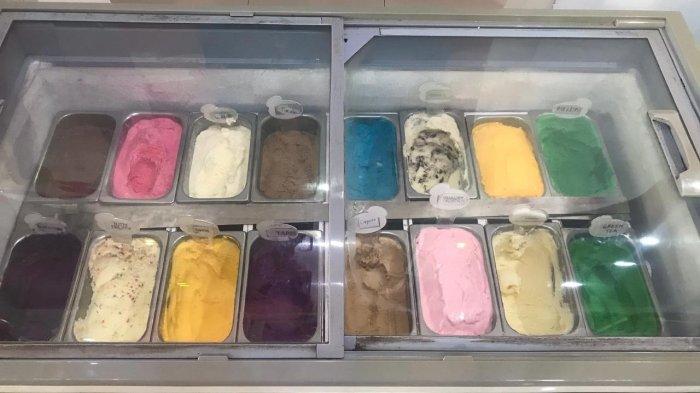 Berbagai varian rasa dan jenis es krim dijual di Es Krim Mbelik ini.