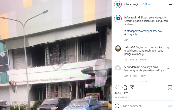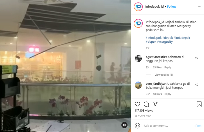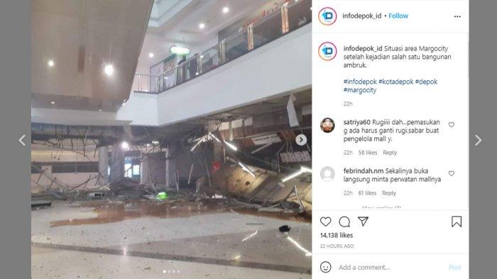"Terjadi ambruk di salah satu bangunan di area Margocity pada sore ini," informasi yang tertulis.