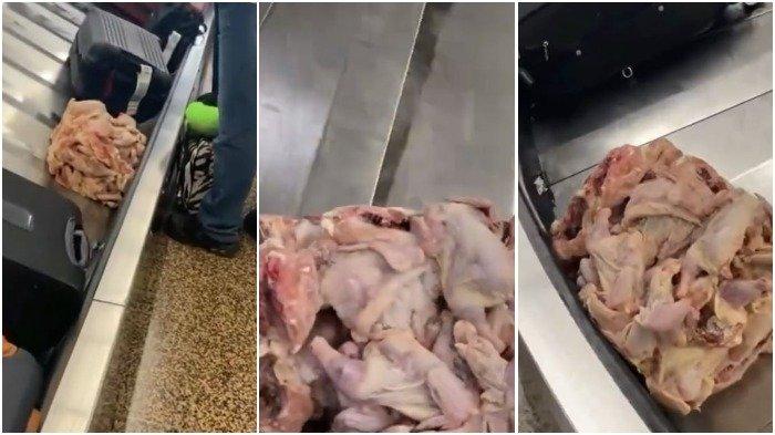 TSA juga memposting sebuah video dari Seattle, Wash yang menunjukkan setumpuk potongan ayam mentah di atas ban berjalan bagasi.