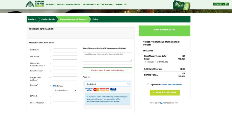 Pastikan untuk mengisi identitas sesuai dengan kartu identitas yang berlaku, dan bawa kartu identitas tersebut ketika melakukan kunjungan ke Taman Safari Prigen.