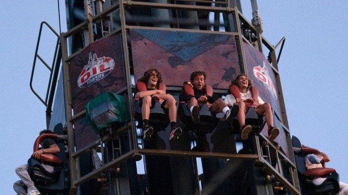 8. Tersenyum lebar meski sedang naik wahana permainan ekstrem