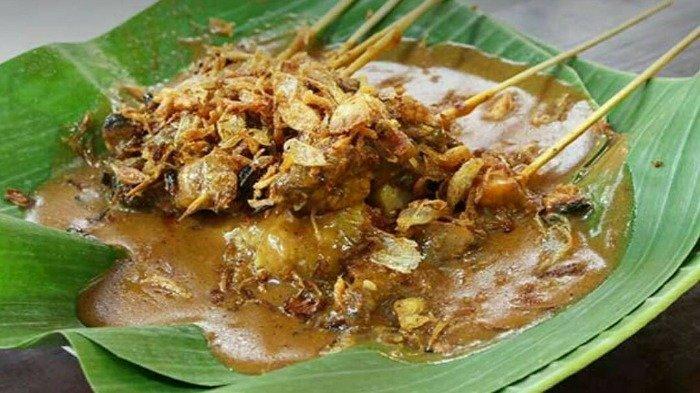 Sate yang disiram kuah kuning kental pedas dengan bumbu yang dominan akan menjadi perpaduan nikmat.