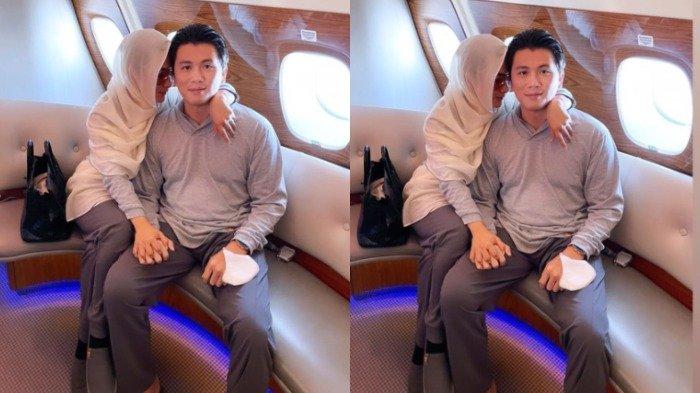 Tak hanya membagikan detail pesawat, ia pun tak lupa berpose mesra dengan suaminya tercinta, Reino Barack.