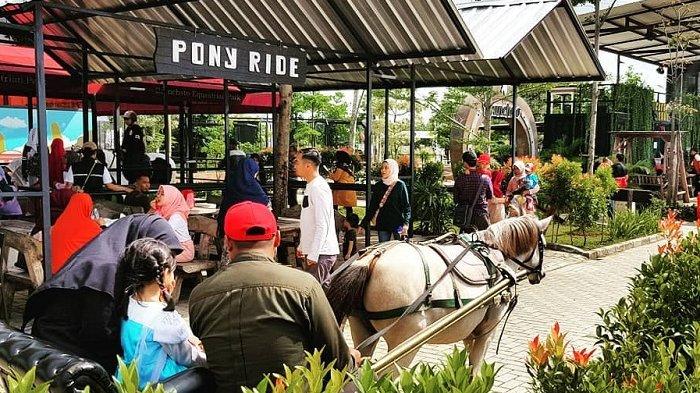 Tak hanya pengunjung dewasa, anak-anak juga dapat mencoba pengalaman berkuda naik kuda poni.