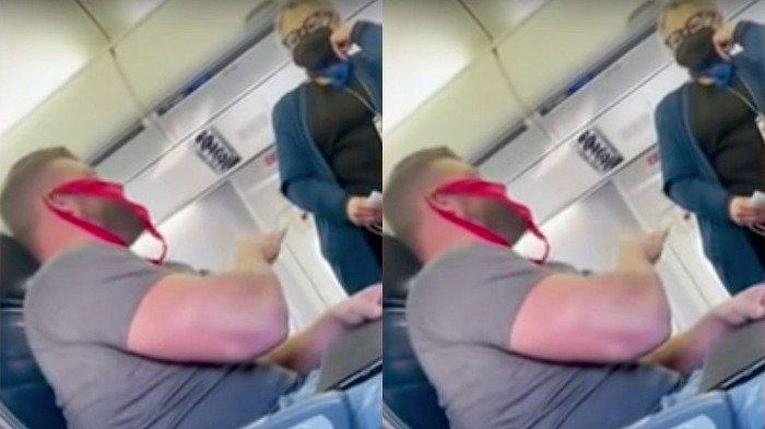Ia mengenakan celana dalam berwarna merah sebagai pengganti masker pada Rabu (15/12/2021) pagi ketika pesawat masih berada di Fort Lauderdale, Florida, Amerika Serikat.