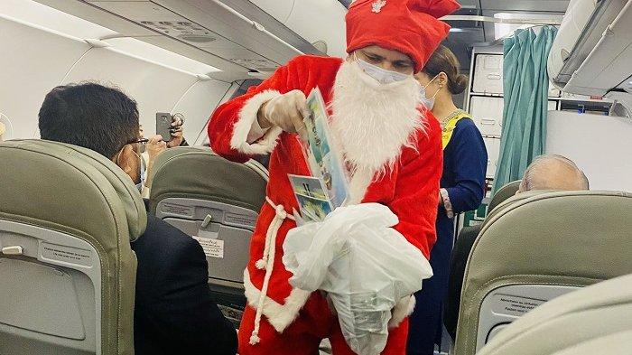 Kejutan berlanjut dengan Sinterklas yang membagikan hadiah Natal kepada para penumpang sambil diiringi lagu Jingle Bells.
