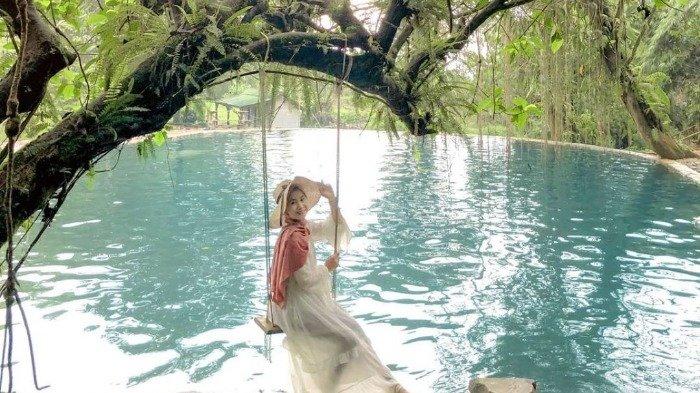 Satu di antaranya ada ayunan yang berada di pinggir telaga.