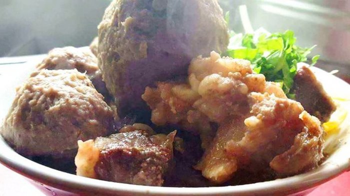 Masih seputar bakso, ada Bakso Urat Pak Unyil yang disajikan lengkap dengan potongan tetelan.