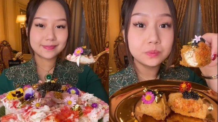 "Setelah jadi aku hias dengan emas yang bisa dimakan, caviar dan juga bunga yang bisa dimakan. Rasanya enak banget, tahu isi cocok banget dimakan sama caviar," jelasnya di dalam video.