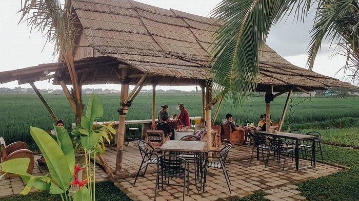 Waroeng Gandroeng merupakan tempat makan enak di Karanganyar yang berlatar pemandangan sawah nan indah.