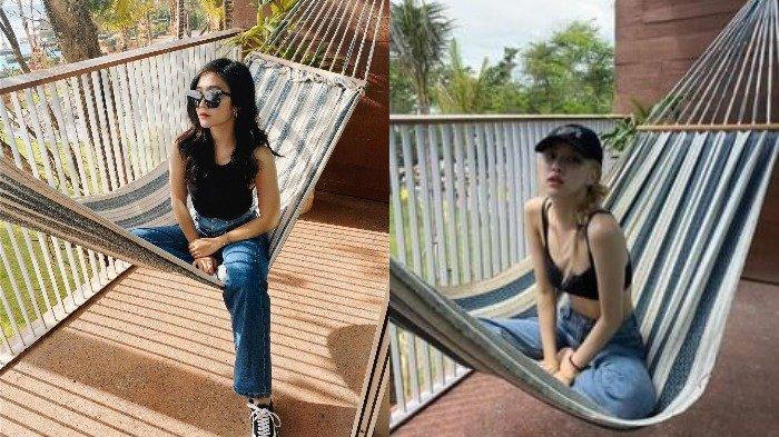 Dalam foto-foto tersebut tampak Febby sedang asyik duduk di sebuah hammock di balkon tempat ia menginap.