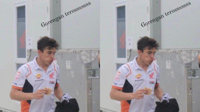 Seperti satu di antaranya ada Marc Marquez yang diduga sedang menyantap gorengan.