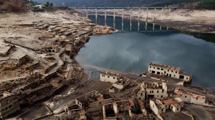 TRIBUNTRAVEL.COM - Desa hantu yang sebelumnya terendam air selama 30 tahun, muncul kembali akibat kekeringan.
