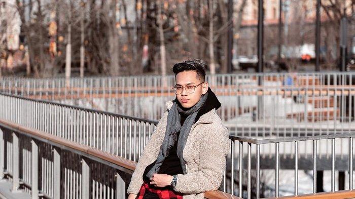 Ketika liburan ke Moscow Russia, Indra Kenz tampil stylish dengan padu padan setelah warna hitam dan jaket berwarna coksu.