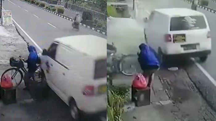 TRIBUNTRAVEL.COM - Viral video sebuah mobil menabrak penjual jamu yang tengah bersepeda membawa dagangannya.