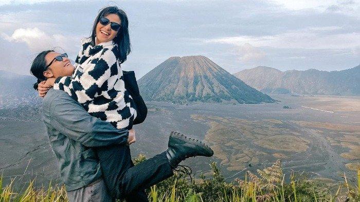Mereka bahkan tak segan memerkan kemesraan dengan berpelukan di depan Gunung Bromo.