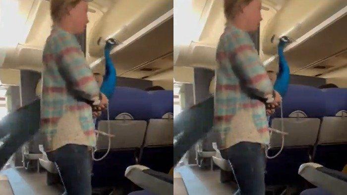 Penumpang yang menyaksikan aksi wanita ini pun tertegun dan tak habis pikir bagaimana ia bisa membawa burung merak tersebut ke dalam pesawat.