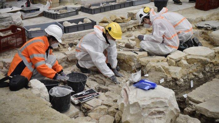 Selama penggalian mereka, yang didefinisikan oleh Kementerian Kebudayaan sebagai "penggalian arkeologi preventif" sebelum pemasangan perancah lainnya, para arkeolog juga menemukan sejumlah patung yang dicat.