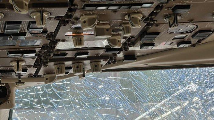 Para kru menyatakan keadaan darurat sekitar 90 menit setelah penerbangan karena kaca depan yang retak.