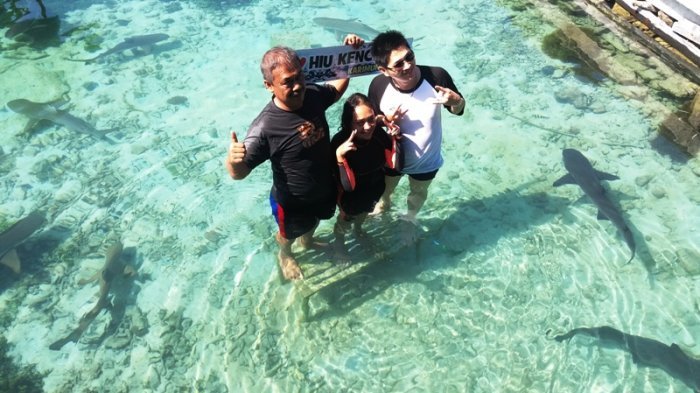 Di Menjangan Besar traveler dapat berenang bersama ikan hiu yang ada di penangkaran.