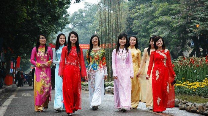 10. Busana tradisional Vietnam mudah dibedakan dengan jubah (Ao Dai) dan topi kerucut (Non La).