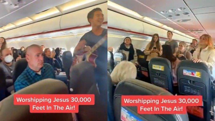 TRIBUNTRAVEL.COM - Viral video singkat yang memperlihatkan penumpang pesawat menyanyikan lagu kerohanian.