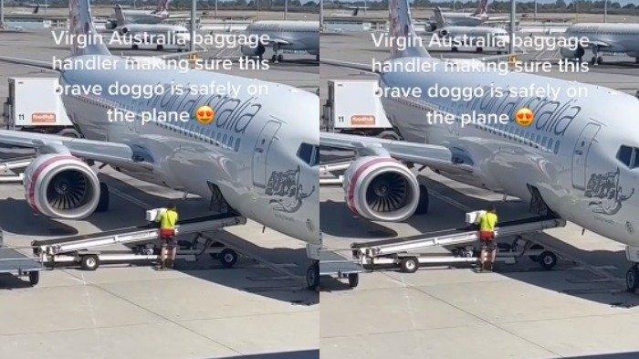 Dalam video yang unggah, tampak seorang petugas bagasi maskapai Virgin Australia menenangkan dan berjalan tepat di samping anak anjing yang gugup saat dimasukan ke dalam pesawat, dilansir dari News.com.au, Jumat (29/4/2022).