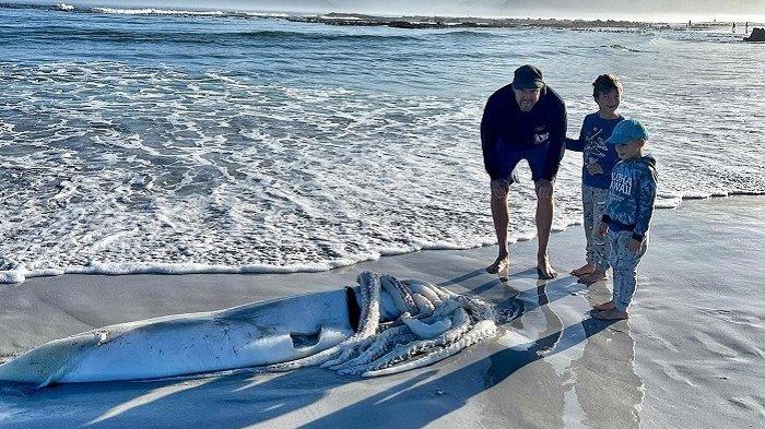 TRIBUNTRAVEL.COM - Seekor cumi-cumi raksasa ditemukan terdampar di sebuah pantai Afrika Selatan.