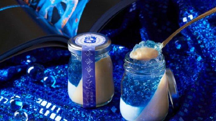 Puding biru, yang fenomenal, dapat ditemukan di kawasan Pelabuhan Numazu, di Prefektur Shizuoka, Jepang.