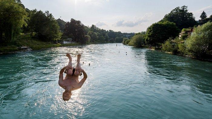 Dikenal sebagai sungai terpanjang di Swiss, Sungai Aare menjadi primadona warga lokal saat musim panas tiba.