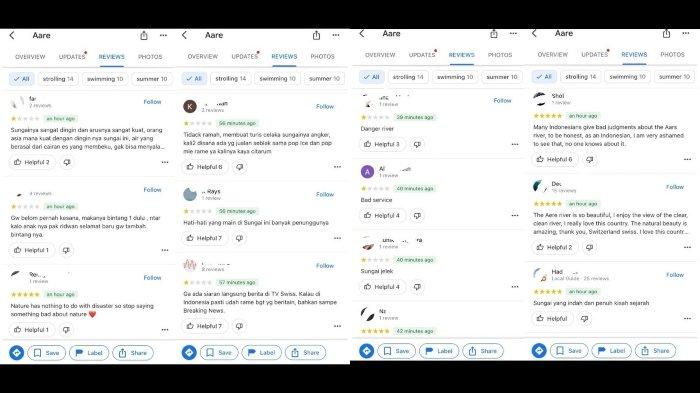 Tak sedikit warganet Indonesia meninggalkan bintang 1 untuk Sungai Aare yang dibarengi dengan ulasan negatif.