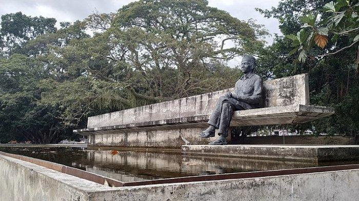 Di taman tersebut terdapat patung Bung Karno yang sedang duduk seperti orang yang sedang merenung.