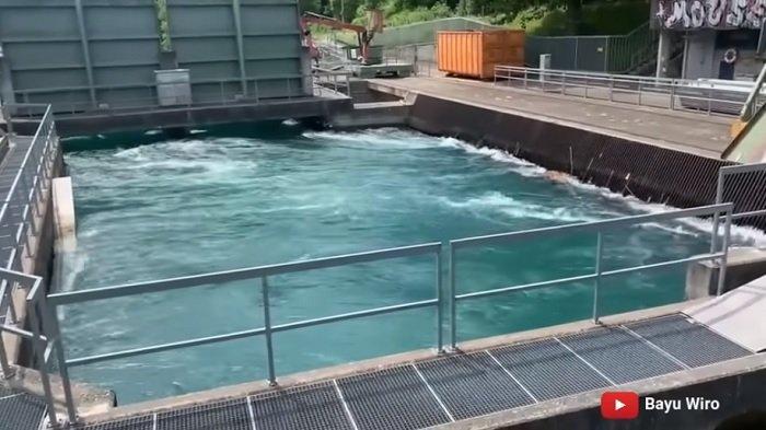 Terlihat dalam video bahwa air yang mengalir cukup deras saat kondisi bendungan terbuka.