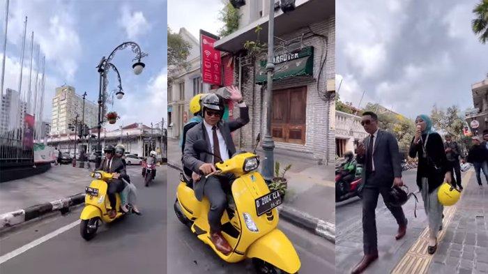 Dalam video terlihat Ridwan Kamil dan putrinya naik Vespa berwarna kuning.