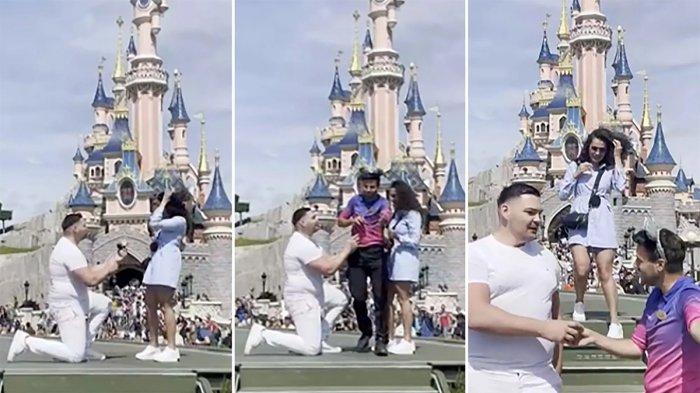 Namun hal menyenangkan tidak dirasakan seorang pria yang mencoba melamar kekasihnya ketika berlibur di Disneyland Paris, Paris, Prancis pada Sabtu (21/5/2022).