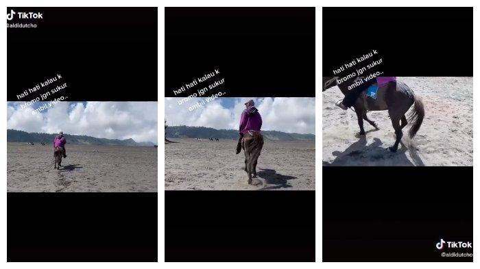 Video berdurasi 27 detik itu memperlihatkan seorang pria menunggang kuda di kawasan wisata Gunung Bromo.