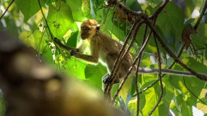 Ada sekira 30 monyet ekor panjang yang hidup di Kawasan Ekowisata Mangrove.