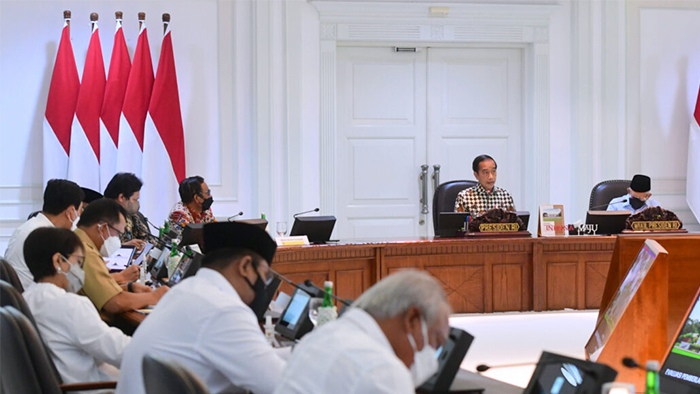Dalam rapat terbatas tersebut, Jokowi membahas mengenai evaluasi PPKM.