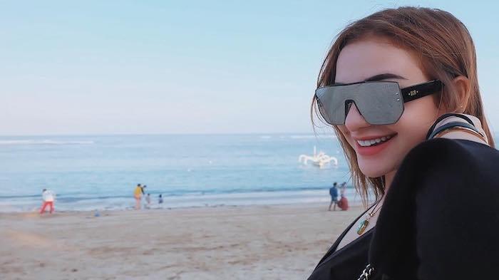 Nora Alexandra yang tinggal di Bali ini juga kerap wisata ke pantai, lho.
