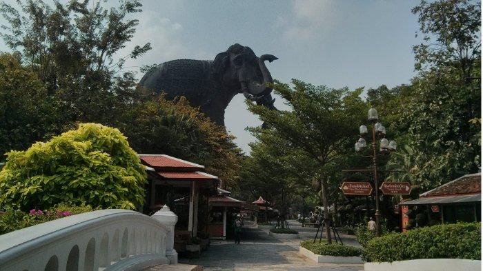 Kunjungi patung gajah berkepala tiga yang dibuat berdasarkan sosok Airavata, makhluk dalam mitologi Hindu.