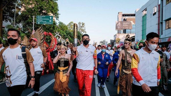 Selama mengikuti Torch Relay ASEAN Para Games 2022, Sandiaga Uno didampingi oleh Wali Kota Solo Gibran Rakabuming Raka serta beberapa artis Tanah Air.