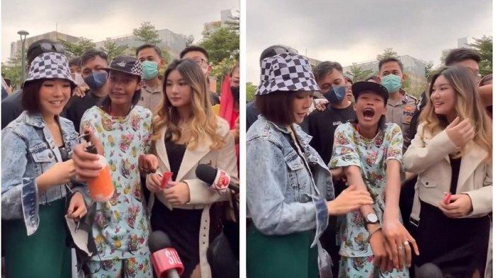 Menariknya, Gisel sempat membantu Bonge untuk menggunakan produk lotion miliknya.