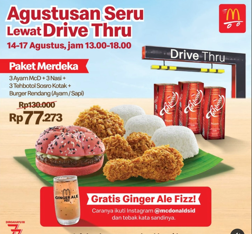 McDonalds juga menghadirkan promo 17 Agustus dengan tajuk 'Agustusan Seru Lewat Drive-Thru'.