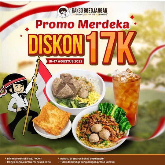 Promo 17 Agustus Bakso Boejangan berlaku di seluruh outlet ya.