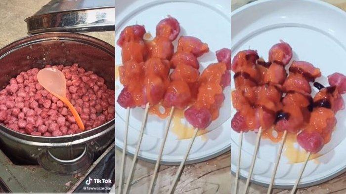 Video berdurasi 5 menit lebih 12 detik tersebut memperlihatkan bagaimana penampilan bakso pink yang ditusukkan pada tusukan bambu.
