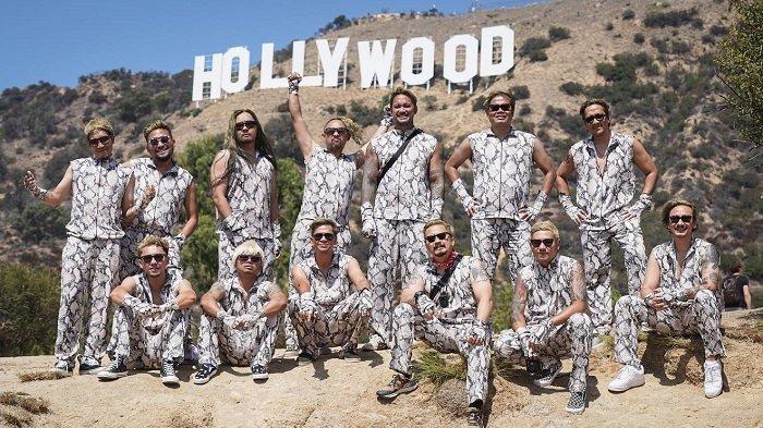 Dalam unggahan tersebut, The Prediksi terlihat berfoto bersama dengan latar belakang Hollywood Sign yang ikonik.