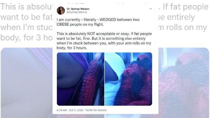 "Saya saat ini terjepit di antara dua orang gemuk dalam penerbangan saya," tulis Watson dikutip TribunTravel dari Irish Mirror, Minggu (16/10/2022).