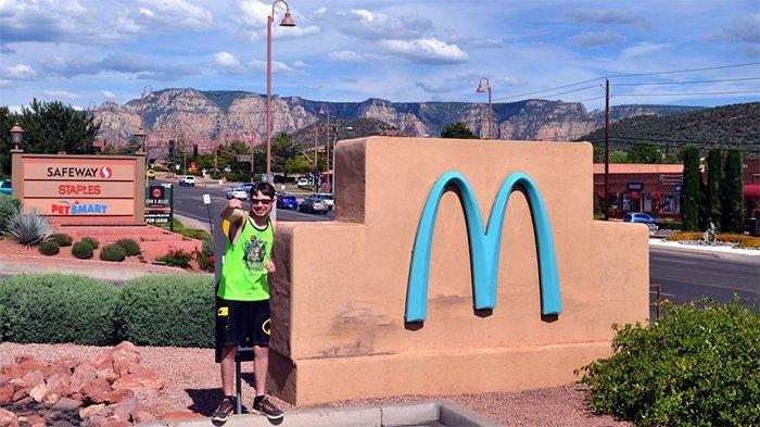 McDonalds di Sedona terletak di tengah kawasan dengan batu merah yang indah sebagai latar belakang.