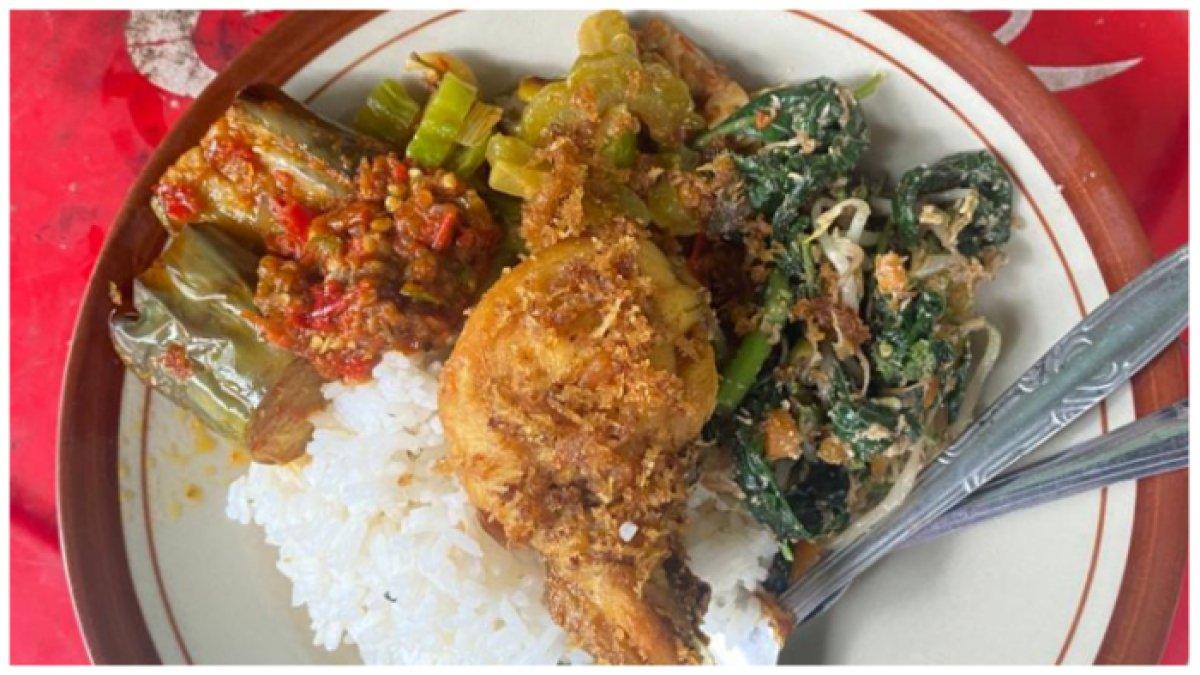 TribunTravel memesan seporsi nasi dengan lauk oseng tempe, ayam goreng, sayur, balado terong dan oseng pare.